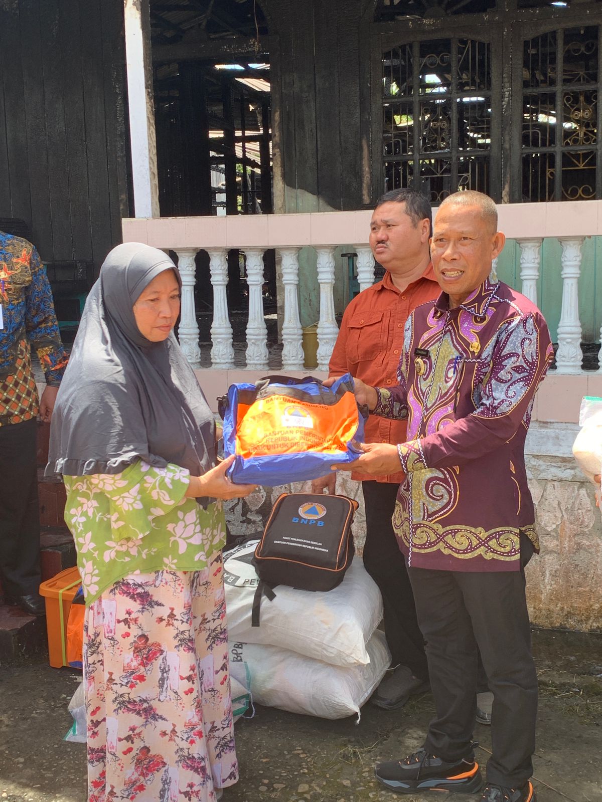 Syarwani juga menyerahkan Bantuan Sosial (Bansos) kepada warga korban kebakaran berupa paket 1 paket, perlengkapan sekolah 2 paket, perlengkapan kebersihan keluarga satu boks, perlengkapan keluarga 1 boks, tempat air minum portabel, 2 karung pakaian layak pakai, dan dari ketahanan pangan berupa beras sebanyak 5 karung beras,