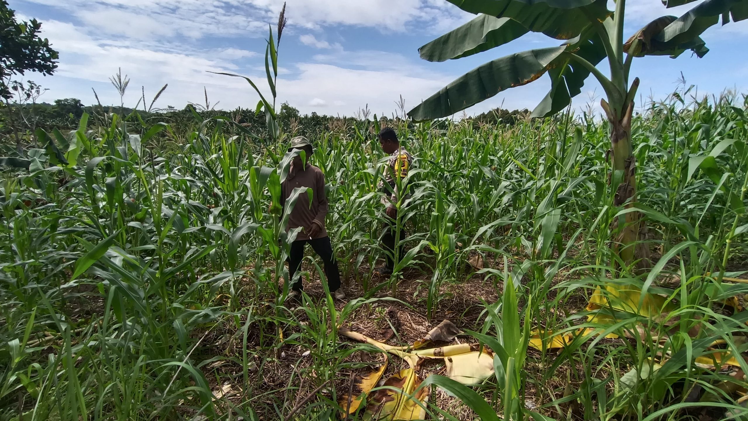 Kegiatan tersebut dilakukan dengan turun langsung ke lapangan untuk memantau kondisi tanaman jagung, memastikan pertumbuhan tanaman berjalan dengan baik, serta memberikan pendampingan kepada petani dalam mengelola lahan pertanian.